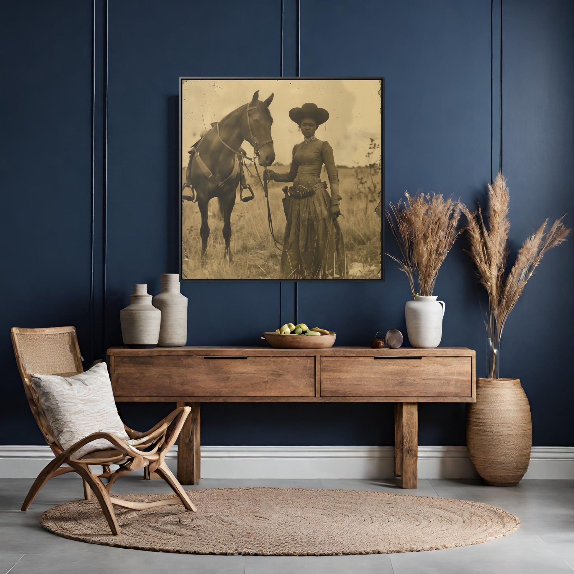 During the creation of the Black Cowgirl photo series, we were deeply inspired by the rich legacy of Black cowgirls in American history and wanted to visually capture their resilience and pioneering spirit. With this series, we hope each of these photos and art prints echoes their tales of breaking barriers and defying expectations, honoring their contributions to the Wild West's landscape.