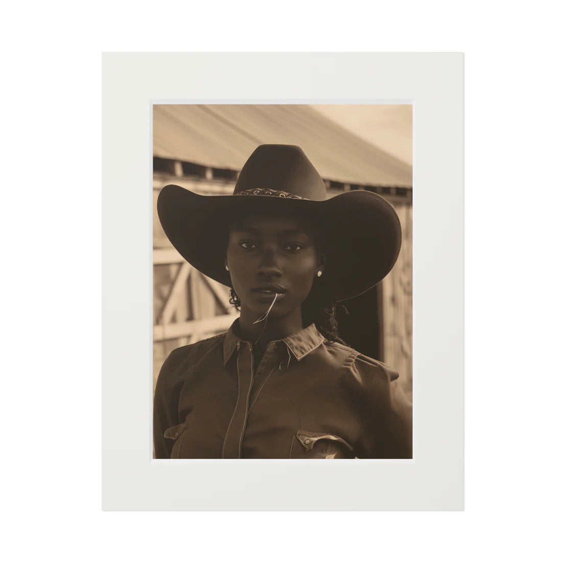 Black Cowgirl, Fine Art Prints (Passepartout Paper Frame)