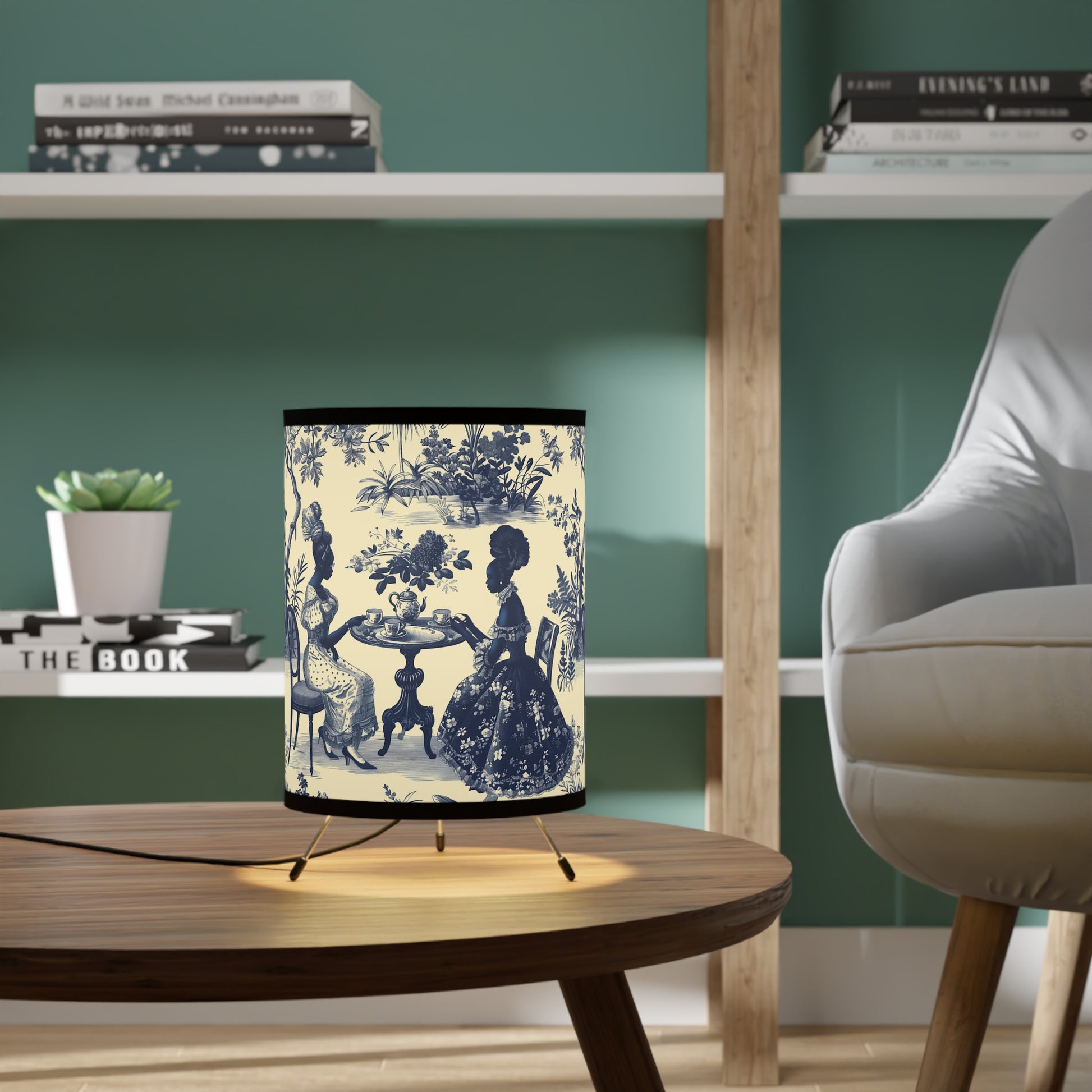 High Tea in the Garden Toile de Jouy | Tripod Lamp with High-Res Printed Shade, US\CA plug